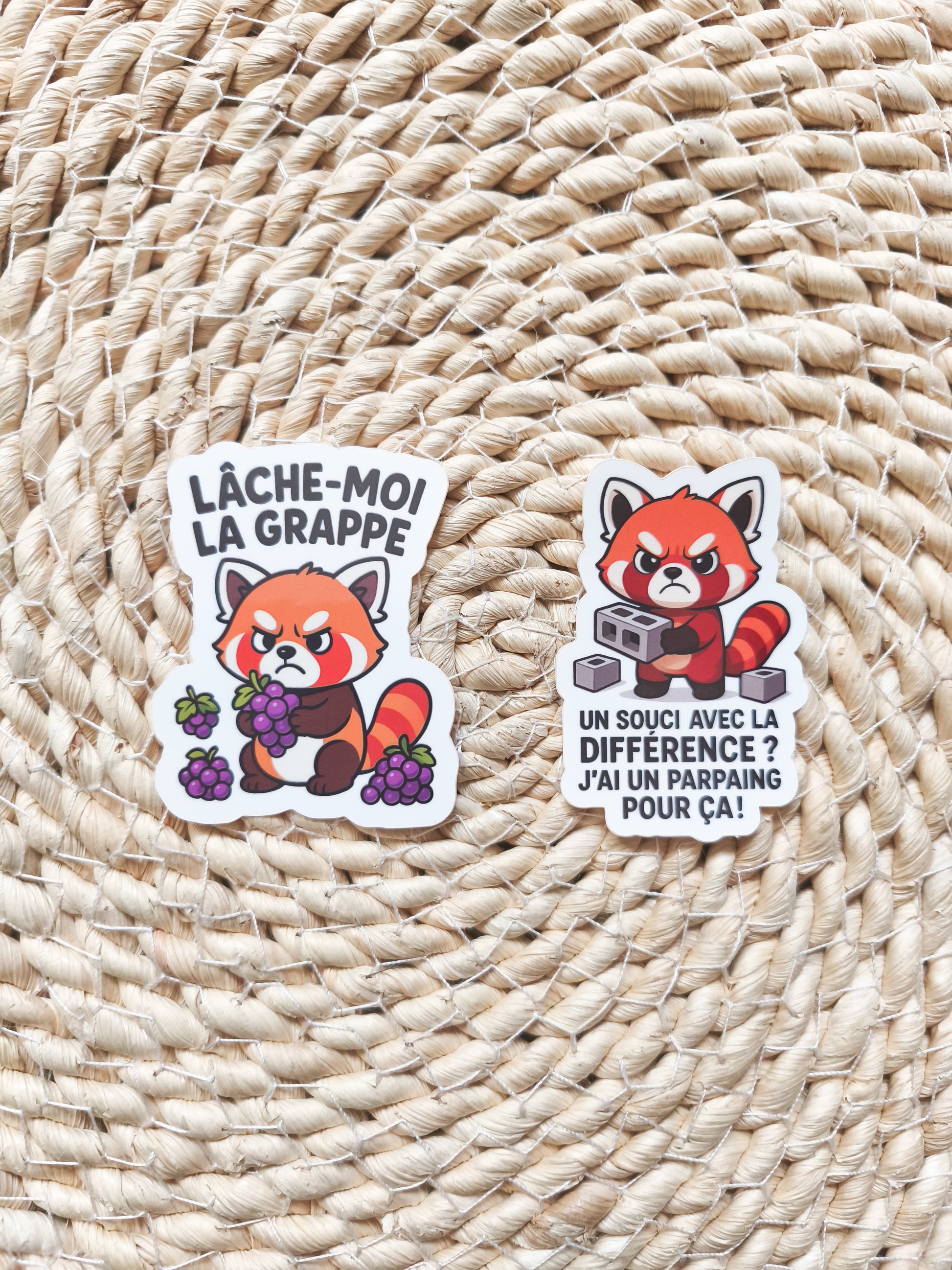 Ici, on a un panda roux légèrement excédé, tenant un parpaing avec autant de délicatesse qu'un avertissement clair. Ce n’est pas de la violence, c’est de la communication transparente. Le message ? Si quelqu’un a un problème avec la différence, qu’il le garde… ou qu’il discute avec mon parpaing (il est très convaincant).