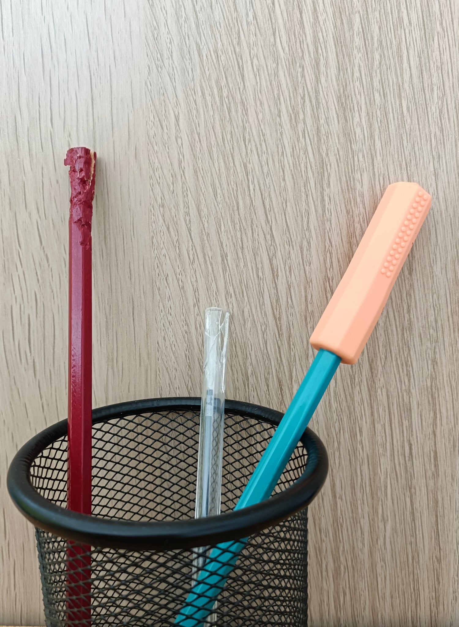 Je passais mon temps a croquer mes stylos et crayons pour evacuer le stress d'une manière quelconque. A peine arriver déjà adopter après une journée compliqué ou l'envie de macher quelques chose a été plus forte que moi. mes dents en sont plus que conquise de cette trouvaille