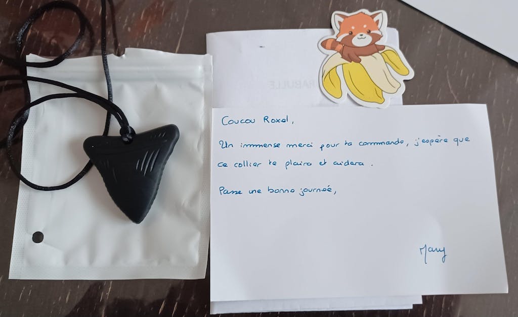 J’ai commandé ce collier ainsi que d’autres articles pour mon fils (17ans, en cours de diagnostic mais grosse suspicion de TSA et TDA. Quand je lui en ai parlé, il a fait comme si ça ne l’intéressait pas…